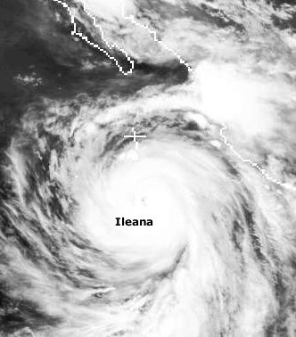 Der Hurrican 'Ileana' zieht zurzeit an der Westküste Mexikos vorbei. Dabei werden in Böen Windgeschwindigkeiten bis zu 200 km/h erreicht. Der Hurrican soll sich noch weiter verstärken. Da er weiter auf den Pazifik ziehen soll, bedroht er auch keine dicht besiedelten Gebiete. Schön zu erkennen ist das Auge des Hurricans.