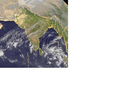 Über Indien sind auf dem Satellitenbild von Samstag früh nur einige hohe Schleierwolken, sowie ein paar Schauerwolken an der Südwestküste zu erkennen. Sonst ist der Himmel nahezu wolkenfrei.