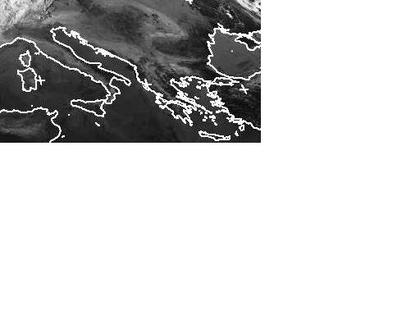 Auf dem Satellitenbild von Donnerstag früh ist der Himmel von Italien bis zum Schwarzen Meer unter Hochdruckeinfluss nahezu wolkenfrei. Dabei sind die Höhenzüge der Alpen und der Apenninen, sowie die des Dinarischen Gebirges und der Karpaten gut zu erkennen, da sie deutlich kühler sind als ihre Umgebung. Kühlere Temperaturen werden im Infrarotbereich heller dargestellt. (Bildquelle: NERC Satellite Receiving Station, Dundee University, Scotland, http://www.sat.dundee.ac.uk/)