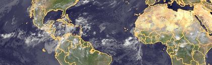 Auf dem Satellitenbild ist die innertropische Konvergenzzone zu sehen, die sich hier von Südamerika bis Afrika erstreckt. In ihrem Bereich treten kräftige Schauer und Gewitter auf.