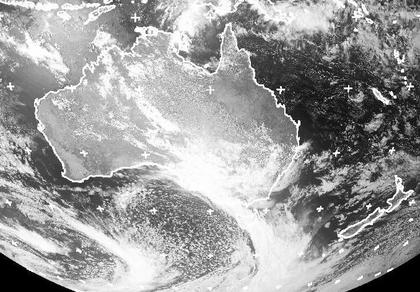 Über weiten Teilen Australiens erkennt man nur wenige Wolken oder ein paar Schauer und Gewitterwolken. Über der Südostküste zieht jedoch ein dichtes Band von Regenwolken nach Nordosten. Es gehört zu der Kaltfront eines Tiefs über dem Südpolarmeer. Auf seiner Rückseite wird deutlich kühlere Luft nach Norden geführt. Morgen sind in Sydney nur noch 20 Grad zu erwarten. Heute wurden noch über 30 Grad erreicht. (Bildquelle: NERC Satellite Receiving Station, Dundee University, Scotland, http://www.sat.dundee.ac.uk/)