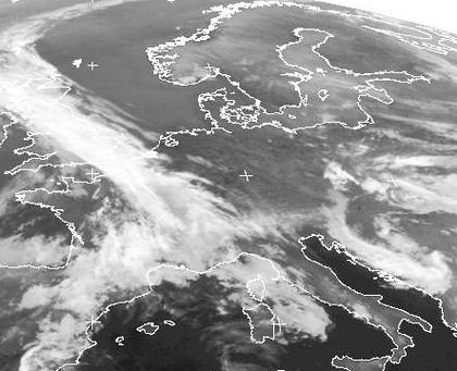 Das Skandinavienhoch 'Paul' sorgt weiterhin für einen weiten Bereich mit nur sehr wenig Bewölkung. Über den Britischen Inseln und Ostfrankreich liegt das Wolkenband eines Frontensystems, das Schauer, teils auch Gewitter bringt. Es bewegt sich nur sehr langsam etwas nach Osten. Vereinzelt können aber gegen Abend auch in Deutschland Gewitter möglich sein.