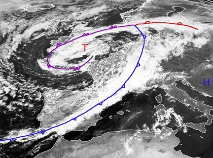 Klassische Wolkenstruktur von Tief 'Mattea'