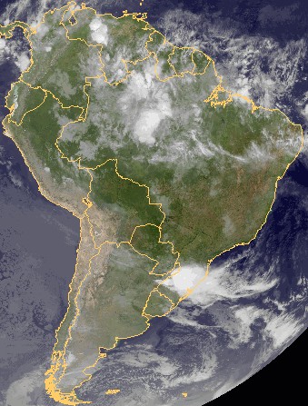 Das heutige Satellitenbild zeigt über dem Norden und dem äußersten Süden von Brasilien teils dichte Quellbewölkung, die hierbei für kräftige Schauer und auch Gewitter sorgt. Im äußersten Süden von Chile und Argentien fällt bei vielfach dichter Bewölkung teils andauernder Regen. Sonst ist es in Südamerika überwiegend heiter und trocken.