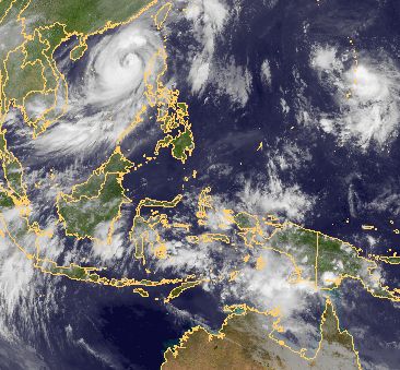 Über dem Südchinesischen Meer befindet sich Taifun 'Megi'. In seinem Bereich werden z.Z. Windgeschwindigkeiten von 170 km/h erreicht.