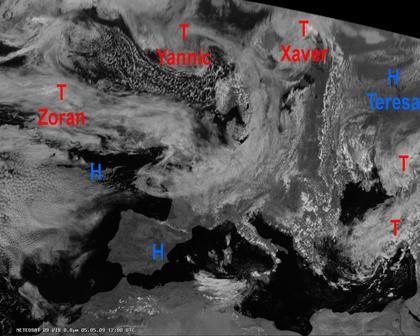 Auf dem heutigen Satellitenfoto ist Europa von den Britischen Inseln, über die Beneluxstaaten, Deutschland bis nach Polen und nach Norden bis an die Nordspitze Norwegens mit vielfach dichten Wolken überzogen. Hierbei kommt es unter den Wolken zu häufigen Regenfällen. Besonders in Skandinavien auch zu teils kräftigen Schauern. Weitere Tiefdruckgebiete sorgen von Griechenland bis in die Türkei und weiter zum Schwarzen Meer für teils kräftige Schauer und auch Gewitter. Hochdruckeinfluss sorgt dagegen auf der Iberischen Halbinsel, in weiten Teilen des Mittelmeeres und im Großteil Osteuropas für überwiegend freundliches und trockenes Wetter.