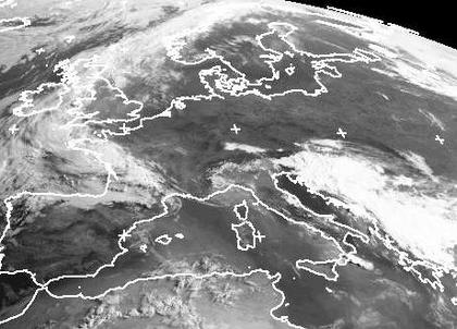 Von Ostfrankreich bis ins Baltikum sind auf dem Satellitenbild kaum Wolken zu erkennen. In Südosteuropa liegen dagegen weiterhin viele teils dichte Wolken. Die Schauer und Gewitter dort lassen aber langsam nach. dafür zieht von Westfrankreich her, wo bereits mehr Wolken zu erkennen sind, warm-feuchte Luft unter Tiefdruckeinfluss langsam nach Osten. Schon heute können in Frankreich teils kräftige Gewitter entstehen. In Deutschland bleibt es dagegen unter dem Einfluss von Hoch 'Zorro' über dem Baltikum bis Mittwoch noch meist trocken. (Bildquelle: NERC Satellite Receiving Station, Dundee University, Scotland, http://www.sat.dundee.ac.uk/)