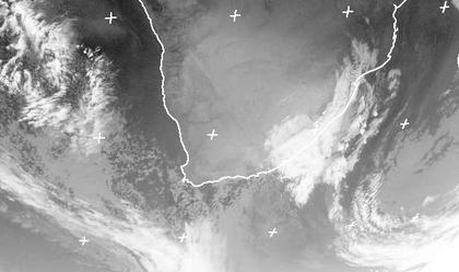 Über der Südostküste von Afrika liegen viele Wolken, die zu einem Tief über dem Indischen Ozean gehören. Sie bringen zeitweise Regen und teilweise Sturm. In weiten Teilen des südlichen afrikanischen Kontinents ist es dagegen wolkenlos und trocken. (Bildquelle: NERC Satellite Receiving Station, Dundee University, Scotland, http://www.sat.dundee.ac.uk/)
