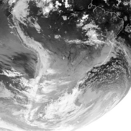 Über Südamerika findet man zurzeit eher wenige Wolken. Im Norden liegen nur vereinzelte tropische Schauer und Gewitter. Über dem Südatlantik liegt ein Tief, das mit einer südlichen Strömung zuletzt kühle Luft bis nach Brasilien transportiert hat. Weiter südlich erkennt man langgezogene hohe Wolken, die die Anden überqueren. In Argentinien bleibt es aber meist trocken. Auf der chilenischen Andenseite stauen sich aber Wolken, die hier Regen bringen. (Bildquelle: NERC Satellite Receiving Station, Dundee University, Scotland, http://www.sat.dundee.ac.uk/)