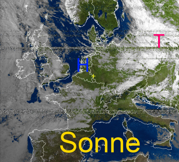 Das Hoch über den Niederlanden hat in Deutschland zu einer Wetterbesserung geführt. Neben lockeren Wolken, die sich vor allem in der Nordhälfte halten, scheint auch verbreitet die Sonne. An den Alpen haben sich zu Tagesbeginn noch einige dichtere Wolken des gestrigen Tiefs gestaut.