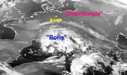 Ein Höhentief über dem Golf von Genua liegt fast ortsfest und bringt weiterhin teils kräftige Niederschläge in Italien sowie auf Korsika und Sardinien, seine Regenwolken reichen sogar bis nach Nordafrika, in den nächsten Tagen löst sich das Tief jedoch auf. Ein stabiles Hoch mit Zentrum über Osteuropa sorgt für ruhiges und oft sonniges Wetter von Frankreich über Deutschland bis nach Osteuropa sowie in Skandinavien. Einige Hochnebelfelder sind über Frankreich zu erkennen.