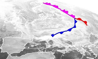 Auf der Rückseite eines Sturmtiefs über Skandinavien strömt aus Nordwesten kühle Luft nach Mitteleuropa. Über der Nordsee bilden sich durch die labile Schichtung der Luftmasse Schauer. Diese Schauer sind auf dem Satellitenbild von Sonntag früh gut zu erkennen. (Bildquelle: NERC Satellite Receiving Station, Dundee University, Scotland, http://www.sat.dundee.ac.uk/)