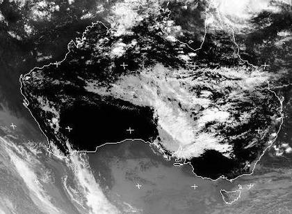Auf dem Satellitenbild von Mittwoch früh sind Schauer- und Gewitterzellen im Norden und Osten von Australien gut zu erkennen. Die Hochreichenden, und damit kalten Wolkenoberkanten (im Infrarotbild weiß dargestellt) heben sich stark vom warmen Erdboden ab (im Infrarotbild schwarz dargestellt).
