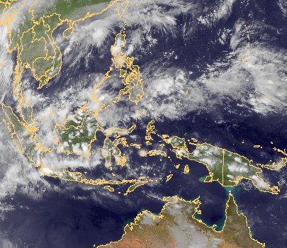 Über Indonesien und Neuguinea haben sich weiter Schauer und Gewitter im Bereich der innertropischen Konvergenzzone entwickelt.