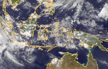Schauer und Gewitter über Indonesien und Neuguinea