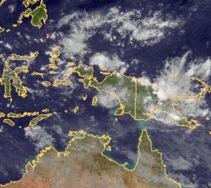 Über Neuguinea entwickeln sich im Bereich der innertropischen Konvergenzzone Schauer und Gewitter. Diese sind im Satellitenbild gut zu erkennen.
