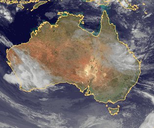 Über Australien liegen derzeit zweit Gebiete mit meist starker Bewölkung und teils kräftigem und gewittrigem Regen. Das eine liegt über dem Südwesten des Kontinents, bei dem zweiten handelt es sich um die Reste des ehemaligen Zyklons 'Ului' über Queensland. Sonst ist es in Australien meist trocken und nur gering bewölkt.