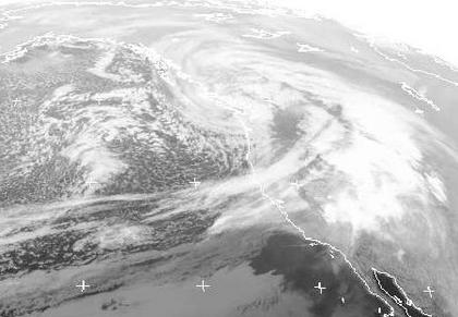 Ein Sturmtief über British Columbia bestimmt das Wetter im Westen von Nordamerika. Über dem Pazifik erkennt man die lockere Beölkung von Schauern, die in der kalten Luft nach Süden ziehen. An der Küste bringen auch dichtere Wolken Regen, im Norden und in den Bergen Schnee. Dazu weht ein teils stürmischer Wind. Die Wolkenfelder weiter im Landesinneren bringen nur gebietsweise Regen oder Schnee. (Bildquelle: NERC Satellite Receiving Station, Dundee University, Scotland, http://www.sat.dundee.ac.uk/)