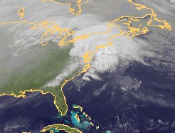Über dem Osten Nordamerikas, etwa bei den Großen Seen, liegt derzeit ein Sturmtief. Vor allem über Neuengland kommt es zunächst noch zu starkem Regen, von Westen her geht der Regen mit zunehmend kälterer Luft jedoch verbreitet in Schneefall über.