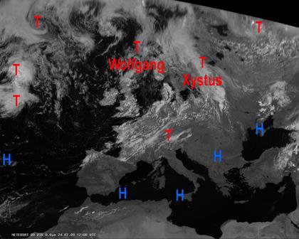 Auf dem Satellitenfoto von heute Nachmittag zeigt sich Tiefdruckeinfluss über Frankreich, Deutschland bis nach Westrussland und weiter nördlich über Skandinavien. Hier ist es weiterhin meist wechselhaft mit teils kräftigen Schauern oder Gewittern, teils auch nur mit Regen. Dagegen ist es in der gesamten Südhälfte und größtenteils auch im Osten Europas von wenigen Ausnahmen abgesehen sonnig und trocken und vielfach sommerlich warm.