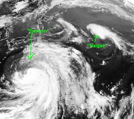 Der tropische Sturm 'Nalgae' zieht auch weiter nach Norden und löst sich dabei auf.