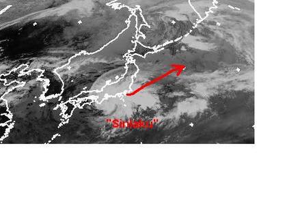 Der Taifun 'Sinlaku' über Südjapan ist auf dem Satellitenbild von Freitag früh gut zu erkennen. Zurzeit erreicht er mittlere Windgeschwindigkeiten von 130, in Böen 157 km/h. Berechnungen zufolge soll er sich jedoch langsam Abschwächen und Richtung Nordosten auf den Pazifik hinausziehen. Dennoch muss im Süden von Japan mit ergiebigen Regenfällen gerechnet werden. (Bildquelle: NERC Satellite Receiving Station, Dundee University, Scotland, http://www.sat.dundee.ac.uk/)