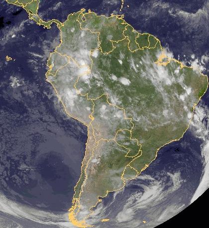 Auf dem heutigen Satellitenfoto von Südamerika zeigt sich über Südkolumbien, Peru und dem Norden Brasiliens teils dichte und hochreichende Bewölkung, die in diesen Gebeiten für teils kräftige Schauer und auch Gewitter verantwortlich ist. Überwiegend freundlich und trocken ist es dabei vom Süden Brasiliens, über Uruguay, Argentinien und dem größten Teil Chiles.