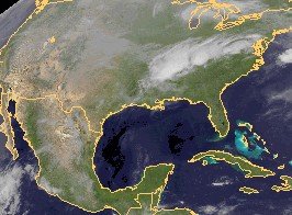 Auf dem Satellitenbild der USA sind im Bereich des Mittleren Osten dichte Wolken auszumachen, die dort gebietsweise für teils kräftigen Regen verantwortlich sind. Desweiteren fällt in den Regionen rund um die Großen Seen zeitweise Regen. Sonst ist es in den USA verbreitet freundlich und trocken.