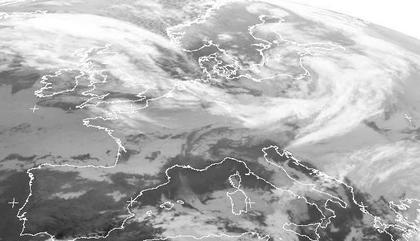 Über der Ostsee liegt das Zentrum von Tief 'Cyrus', dessen Wolken über Deutschland südwärts ziehen. Es brachte heute bereits Sturm. Bei Island erkennt man die Bewölkung des neuen Tiefs 'Dorian', das sich rasch verstärkt und sich schon im Laufe der Nacht Deutschland nähert. Dabei ist mit kräftigem Regen, besonders in höheren Lagen auch kräftigem Schneefall zu rechnen. Zudem bringt 'Dorian' stürmischen Wind mit verbreitet schweren Sturmböen, in den höheren Lagen auch Orkanböen.