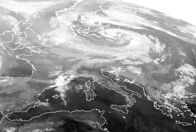 Das Tief 'David' befindet sich zur Zeit mit seinem Zentrum über dem Baltikum. Seine Front reicht von dort über Polen und Deutschland bis nach Skandinavien. Sie bringen heute zum Teil ergiebigen Regen mit sich. Über Frankreich, der Iberischen Halbinsel und im Mittelmeerraum sorgt Hochdruckeinfluss für eine nur leichte Bewölkung.