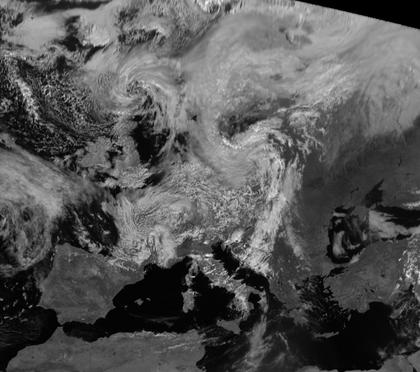 Das Wetter in Mitteleuropa wird von den Tiefs 'Ingeborg' bei Schottland und 'Judy' über der Ostsee bestimmt. Besonders deutlich im Satellitenbild ist das Tief 'Ingeborg' an der typischen spiralförmigen Wolkenstruktur erkennbar. Vom Atlantik her nähert sich Tief 'Kerstin' Westeuropa.
