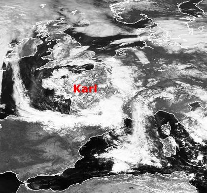 Am Mittwoch Mittag liegt Tief 'Karl' über Frankreich. An seiner Ostflanke streifte er auch Deutschland, brachte hier aber kaum Regen. 'Karl' wandert nun nach Süden weiter und bringt am westlichen Mittelmeer Schauer und Gewitter, löst sich dann aber bald auf. Über Spanien und bis auf Hochnebel an der Ostsee auch in Deutschland ist es dagegen nur gering bewölkt, der hier vorwiegende Hochdruckeinfluss verbindet sich am Donnerstag zu einer Hochdruckbrücke über Mitteleuropa. (Bildquelle: NERC Satellite Receiving Station, Dundee University, Scotland, http://www.sat.dundee.ac.uk/)
