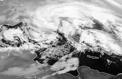 Das kräftige Tief 'Karlheinz' bringt verbreitet wechselhaftes Wetter in Südeuropa. Auf dem Sattelitenbild vom Dienstagmorgen erstreckt sich seine Warmfront von dem Dinarischen Gebirge bis zum Schwarzen Meer; die nachfolgende Kaltfront reicht bis nach Nordafrika; dahinter haben sich von den Balearen bis zum Adriatischen und Ionischen Meer teils kräftige Schauer entwickelt.