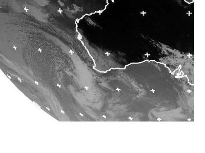 Auf dem Satellitenbild von Montag früh ist westlich von Australien ein Tiefdruckgebiet gut zu erkennen. Seine Ausläufer sorgen heute und in den nächsten Tagen für teils kräftigen Regen und stürmischen Wind in den westlichen Landesteilen des Kontinents. (Bildquelle: NERC Satellite Receiving Station, Dundee University, Scotland, http://www.sat.dundee.ac.uk/)