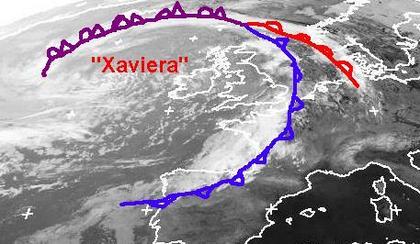 Das Atlantiktief 'Xaviera' befindet sich mit seinem Zentrum zwischen Island und Irland. Seine Fronten erstrecken sich über Südskandinavien sowie von der Nordsee über Westfrankreich und Nordwestspanien. Für Deutschland wird vor allen die Kaltfront wetterwirksam, sie zieht am Abend und in der Nacht von West nach Ost über Deutschland hinweg, und sorgt für teils kräftige Schauer und Gewitter.