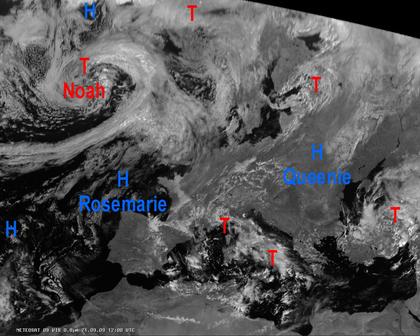 Auf dem Satellitenfoto von heute Nachmittag zeigen sich mehrere Tiefdruckgebiete sowohl im Norden Europas als auch in weiten Teilen Südeuropas. Vor allem im zentralen Mittelmeer und über dem Norden und Osten der Türkei sorgt Tiefdruckeinfluss für vielfach dichte Wolken und teils kräftige Schauer oder Gewitter. Im Norden fällt aus den meist vielen Wolken meist Regen. Deutlich freundlicher ist es durch eine Hochdruckbrücke von der Iberischen Halbinsel, über den Norden Frankreichs, Deutschland und weiter bis in den Westen Russlands. Hier kommt es nur vereinzelt zu Schauern oder etwas Regen und häufig kommt die Sonne zum Zuge.