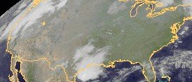 Auf dem Satellitenfoto der USA von heute Nachmittag ist der Großteil des Staates wolkenfrei oder nur gering bewölkt und daher trocken. Tiefdruckeinfluss sorgt aber sowohl im Nordwesten der Vereinigten Staaten und besonders auch im mittleren und südlichen Teil Texas für teils kräftige und ergiebige Niederschläge. Dazu ist es teils auch sehr windig.