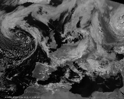 Auf dem heutigen Satellitenfoto zeigen sich weite Teile Europas nur locker bewölkt oder auch wolkenfrei. In weiten Teilen Süd- und Osteuropas herrscht aber auch leichter Tiefdruckeinfluss mit teils dichten Wolken und einzelnen Schauern. Zeitweilige Schauer und auch kurze Gewitter treten vor allem zwischen Italien und der Adria auf, hier sind gebietsweise auch starke Schauer und Gewitter möglich. Vor allem in Nordwesteuropa herrscht weitgehend sonniges und trockenes Wetter.