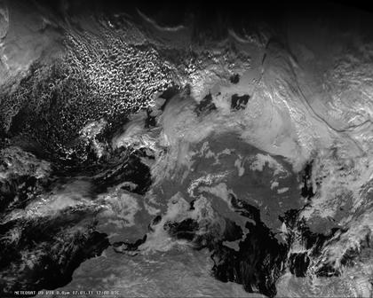 Zur Zeit halten sich durch Tiefdruckeinfluss besonders dichte Wolken von Nordwest- über Nord- bis nach Nordosteuropa, hierbei fällt zeitweise Regen, in Skandinavien und in Nordosteuropa überwiegend Schnee.
