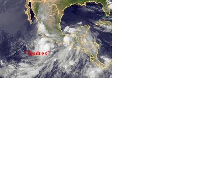 Neben einigen Schauer und Gewitterzellen über Mittelamerika ist an der Westküste von Mexiko der Tropische Sturm 'Andres' gut zu erkennen. Zurzeit erreicht er mittlere Windgeschwindigkeiten von 65, in Böen 93 km/h. Berechnungen zufolge soll er sich noch verstärken und Richtung Nordwesten auf den Pazifik hinausziehen.