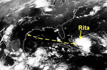 Der Tropische Sturm 'Rita' verlagert sich von den Bahamas westwärts, dabei entwickelt er sich zu einem Hurrikan, am Dienstag und Mittwoch streift er mit Windgeschwindigkeiten von 140 bis 170 km/h die Nordküste Kubas sowie die Südküste Floridas, danach überquert er den Golf von Mexiko und nimmt Kurs auf Texas.