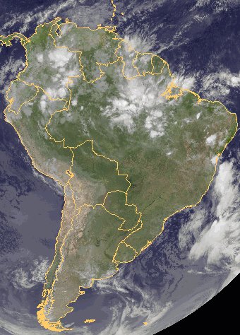 Über den nördlichen Teilen Südamerikas liegen die Wolken teils kräftiger tropischer Gewitter. Örtlich kommt es hier zu sehr ergiebigem Regen. Vom mittleren Brasilien nach Süden bis hin nach Feuerland ist es dagegen im Moment unter Hochdruckeinfluss verbreitet trocken bei nur hier und da einigen lockeren Wolken.