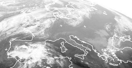 Auf dem Satellitenbild von Freitag Vormittag ist, in einer breiten Zone von Deutschland bis Russland in Ostrichtung und bis einschließlich des mittleren und östlichen Mittelmeers in Südrichtung, eine nahezu wolkenfreier Himmel zu beobachten. Dagegen dominieren in West-, Südwest- und Nordeuropa das Islandtiefs 'Dom', ein weiteres Tief über der Iberischen Halbinsel und das Tief 'Christoph' nördlich von Skandinavien das Wettergeschehen. In diesen Bereichen ist es unbeständig, in Mitteleuropa dagegen meist schön. Am westlichen Mittelmeer sind wiederum deutlich dichtere Wolken zu finden, die auch auf der Iberischen Halbinsel unbeständigeres Wetter bringen.
