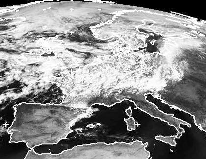Unter dem Einfluss von Tief 'Gisela' über Südskandinavien und bei einem Zustrom feuchter Luftmassen vom Atlantik kommt es über West- und Mitteleuropa zu vielen Wolken, häufig mit Schauern oder Gewittern. Dazwischen liegen aber auch einige Wolkenlücken. Dichte Wolkenbänder, wie sie sich an Fronten bilden, sind dagegen kaum zu erkennen. (Bildquelle: NERC Satellite Receiving Station, Dundee University, Scotland, http://www.sat.dundee.ac.uk/)