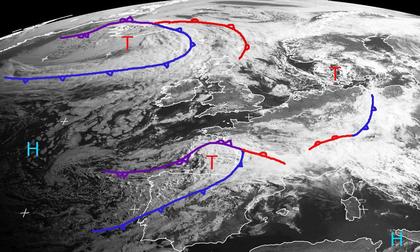 Mehrere Tiefdrucksysteme bestimmen heute das Wetter in Nord-, West- und Mitteleuropa. Häufig finden sich dichte Wolken, die vielerorts Schauer oder Gewitter bringen. Etwas geringer ist die Bewölkung heute morgen in einem Streifen von den südlichen Britischen Inseln bis nach Norddeutschland. Während es in Norddeutschland mit einer nordwestlichen Strömung aber wieder zu Schauern und Gewittern kommt, kann sich der Hochdruckeinfluss über der Britischen Inseln aber weiter ausdehnen. Mitte dieser Woche reicht das Hoch bis Deutschland, bevor das Islandtief dann die Regie in Teilen Mitteleuropa übernimmt. (Bildquelle: NERC Satellite Receiving Station, Dundee University, Scotland, http://www.sat.dundee.ac.uk/)
