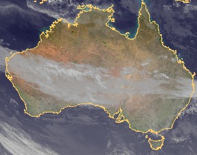 Auf dem Satellitenfoto Australiens sind über dem südlichen Teil des Kontinents weitreichend Wolken zu erkennen, die vielerorts auch dicht sind. Regen fällt dabei allerdings nur vereinzelt etwas. Im Nordteil des Kontinents ist es dagegen weitgehend sonnig und ebenso trocken.