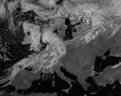 Tief 'Beate' sorgt für dichte Wolken in West- und in Nordwesteuropa. Das übrige Europa zeigt sich unter Hochdruckeinfluss meist wolkenarm.