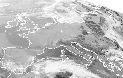 Über Spanien und dem südlichen Mittelmeer sowie über Skandinavien und der Ostsee halten sich teils dichte Wolkenfelder. Hier sorgen Tiefdruckgebiete gebietsweise für Regen oder Schauer. Von England bis Griechenland bringt eine Hochdruckbrücke meist freundliches Wetter mit nur wenigen Wolken. (Bildquelle: NERC Satellite Receiving Station, Dundee University, Scotland, http://www.sat.dundee.ac.uk/)