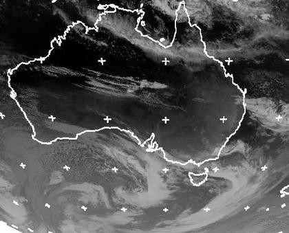 Über Australien finden sich nur vereinzelt ein paar hohe Wolken, die aber keinen Regen bringen. Dagegen wird die Südküste von Ausläufern von Tiefs über dem Südpolarmeer gestreift. Dort kommt es auch zu Regen und Regenschauern. (Bildquelle: NERC Satellite Receiving Station, Dundee University, Scotland, http://www.sat.dundee.ac.uk/)