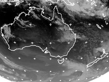 In Australien ist es überwiegend gering bewölkt und trocken. Vor allem in Queensland findet man aber Bewölkung von einigen Schauern und Gewittern. Ein Tiefausläufer streift von Süden her Tasmanien. Er zieht weiter nach Neuseeland, wo er auf der Südinsel mehr Regen bringen wird. (Bildquelle: NERC Satellite Receiving Station, Dundee University, Scotland, http://www.sat.dundee.ac.uk/)
